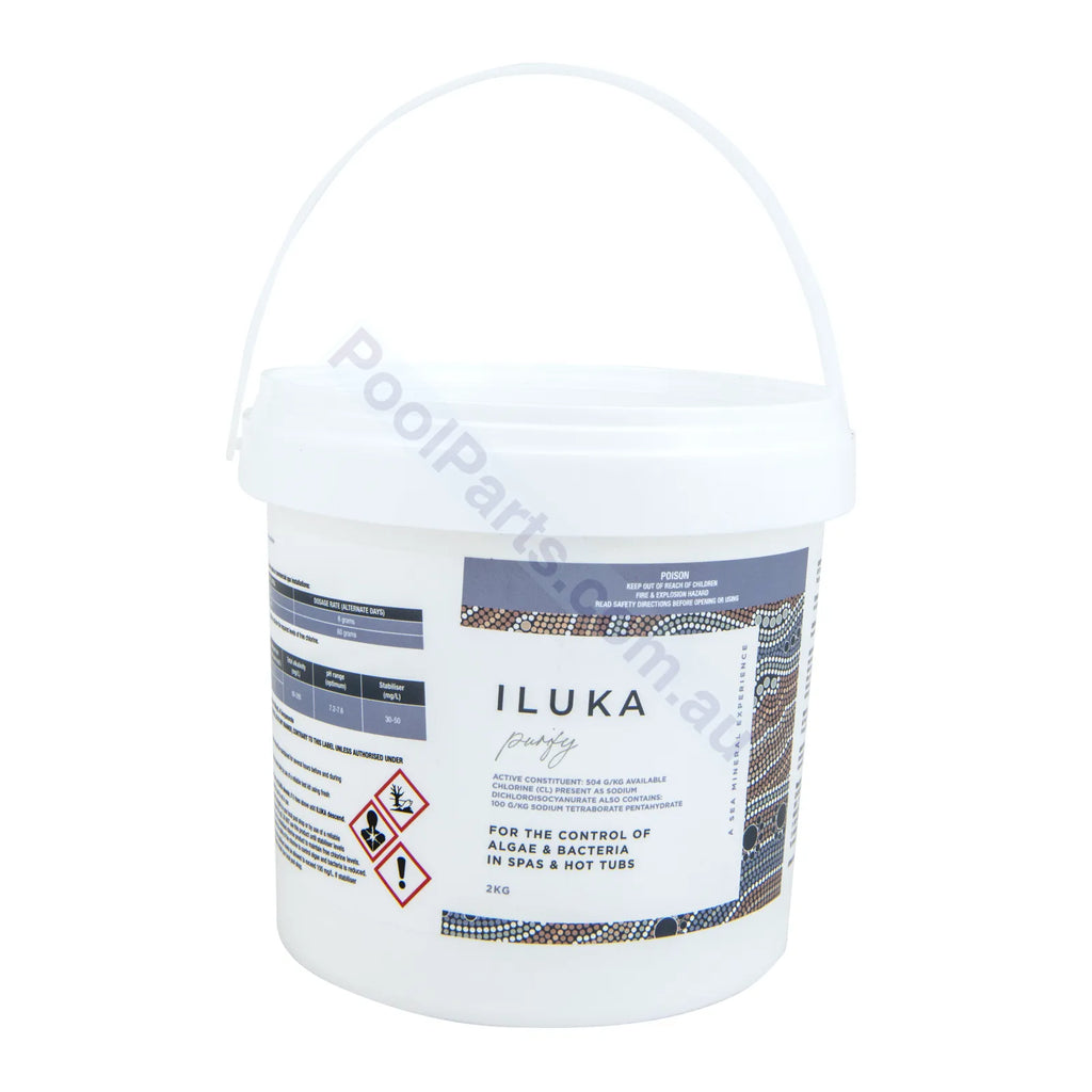 2kg Iluka Purify is your base spa sanitiser, an essential part of the Iluka spa system. Simply add 6 grams every other day for an average 1,000 spa to help sanitise and keep your spa healthy and clean.