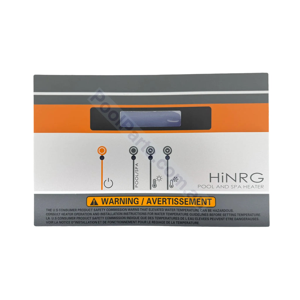 This is the Overlay Facia for the front of all HiNRG and Jacuzzi J-HN gas heaters. May fail with age & direct sunlight. Label 362. Genuine Astralpool overlay label.
