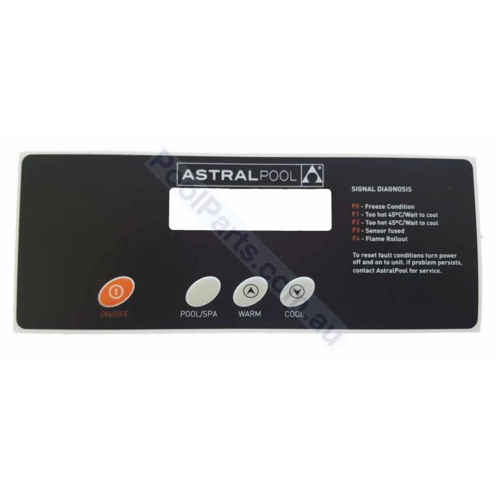 Genuine OEM Protective label / decal / sticker replacement for all Hurlcon Astralpool HX, JX, WX, and MX Heaters. Originally beige, grey, or green. Suits all 4-button Thermostats.