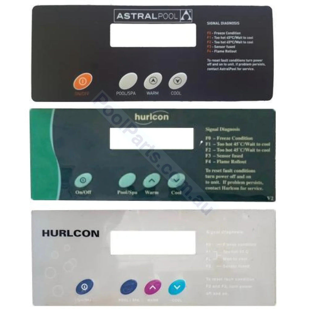 Hurlcon Astralpool Gas Heater Label - MX HX JX WX Thermostat PCB Facia Label Decal Sticker