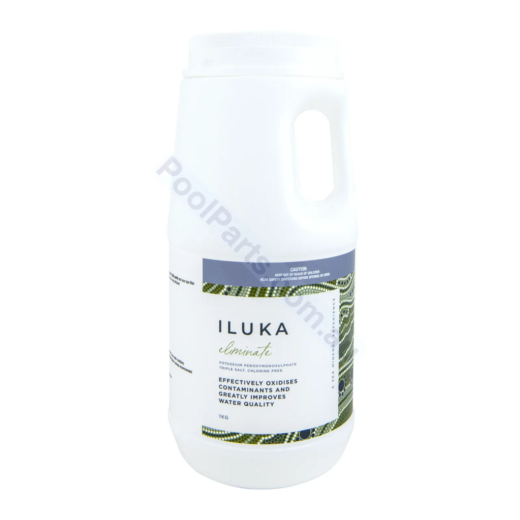 Iluka Eliminate is an extremely fast acting non-chlorine shock treatment for spas that assists Iluka Purify and your spa filter by remoiving containants from your spa or hot tub, making sanitation and filtration much more efficient.