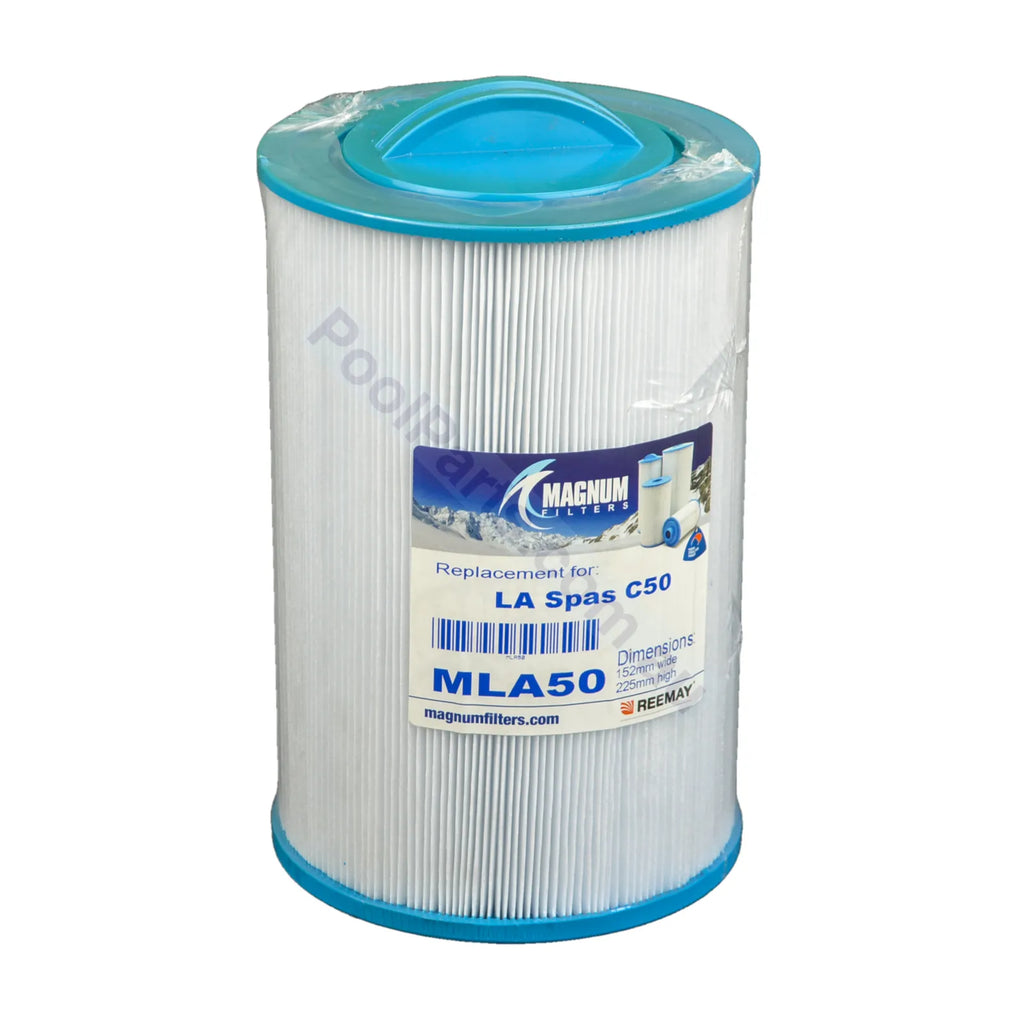 LA Spas 45 / C45 / C50 Spa Filter 210mm x 150mm or 230mm x 150mm Replacement Cartridge Filter. Pleated filter cartridge 50 sq ft. Common on LA Spas pre 2003. These are not cheap generic filters. Uses premium Magnum, Darlly, Reemay materials.
