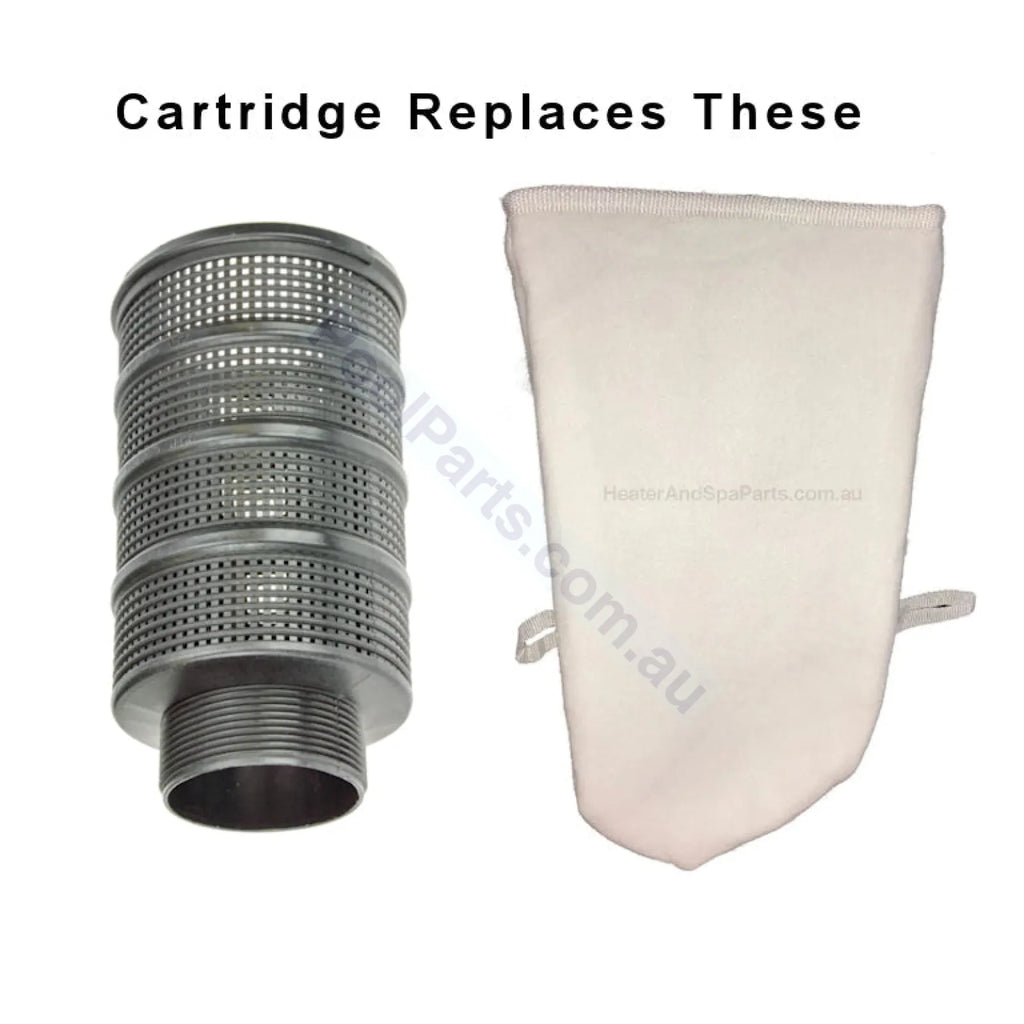 LA Spas 45/85 replacement. Can be used to replace the LA Spa Aqua Kleen sock and frame from 2003. 3.5" MPT pleated filter cartridge replacement.