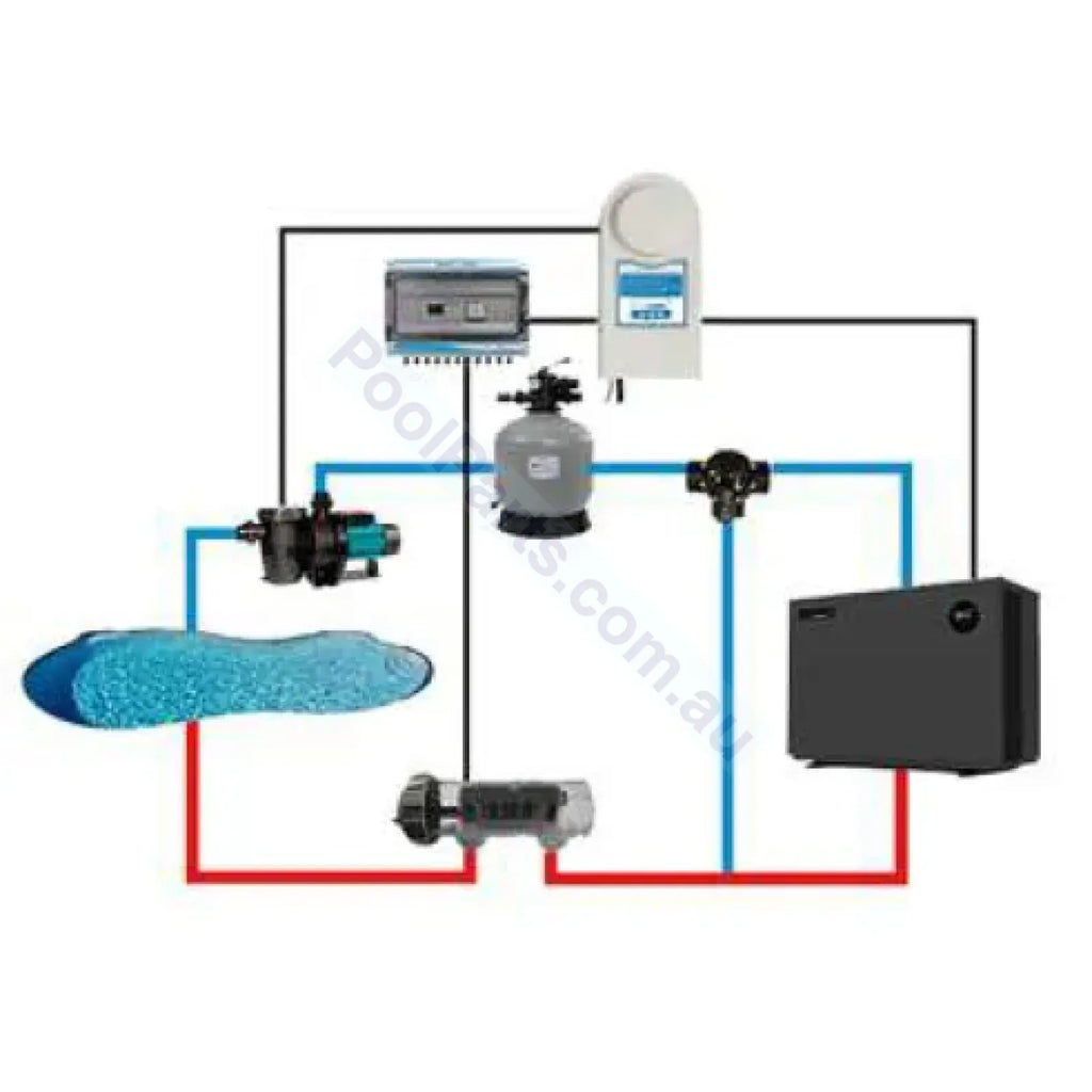 This allows pump control override of a chlorinator/dosing system/timer, using the same filtration pump for heating. Save energy by not having to run another pump to initiate the pool heat pump.