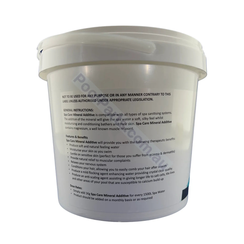 - Spas & Hot Tubs: Add 1kg Spa care mineral additive for every 1500lt spa water when fresh-filling