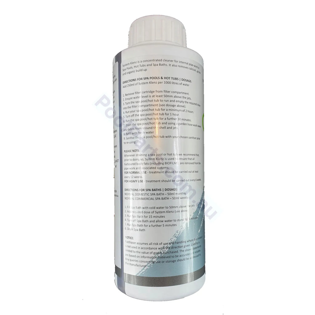 System Klenz is a concentrated cleaner for internal pipe-work in Spa Pools, Hot Tubs and Spa Baths. It also removes calcium, grime and organic build up.