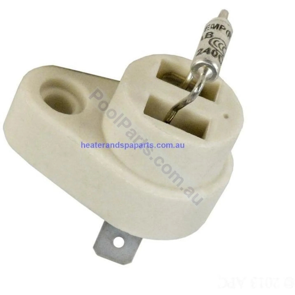 Fusible link high-limit found in post-recall HiNRG gas heaters on the flue outlet. Also common cause of the Fusible Link Fault / Fuselink Error on Zodiac Jandy gas heaters.