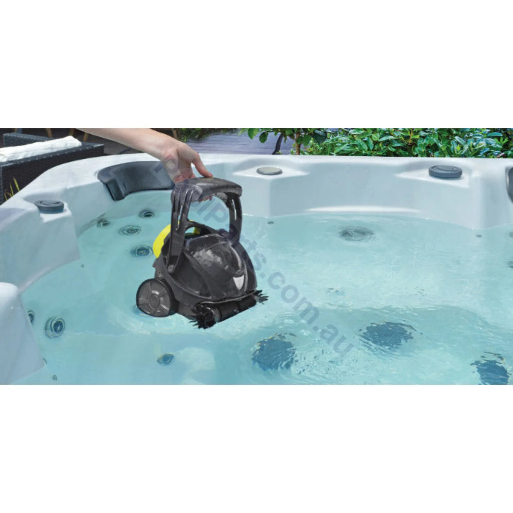 Effortless Spa cleaning - The first-ever automatic cleaner for home spas. SPABOT™ is an autonomous robotic cleaner that is also cordless thanks to its 6Ah rechargeable lithium-ion battery. Its indicator lights show the device’s charge level and its progression through the cycle steps.